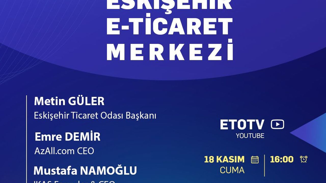 ETO üyelerine e-ticaret dünyasının kapılarını aralayan Eskişehir E-Ticaret Merkezi’nin çevrimiçi tanıtım toplantısı 18 Kasım Cuma günü 16:00’da ETOTV YouTube kanalında gerçekleştirilecek.