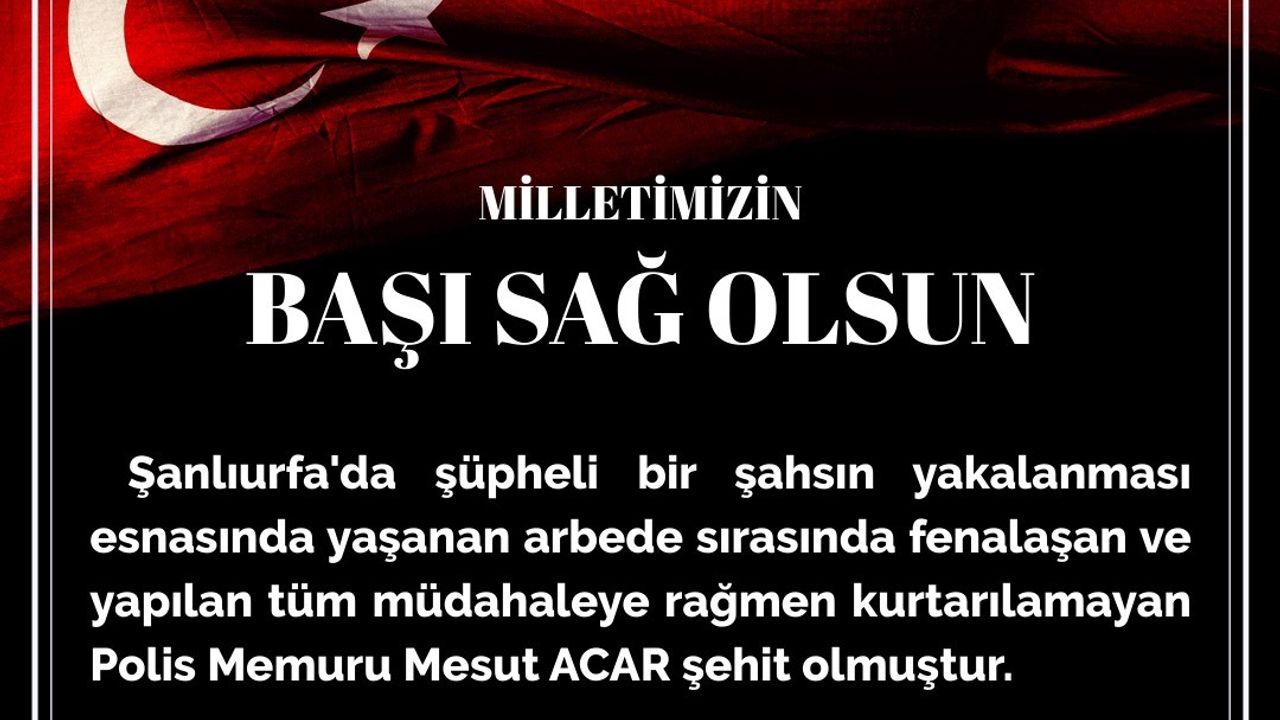 Eskişehir Emniyet Müdürlüğü, Şanlıurfa’da görev sırasında rahatsızlanan şehit olan polis memuru Mesut Acar için taziye mesajı yayımladı.
