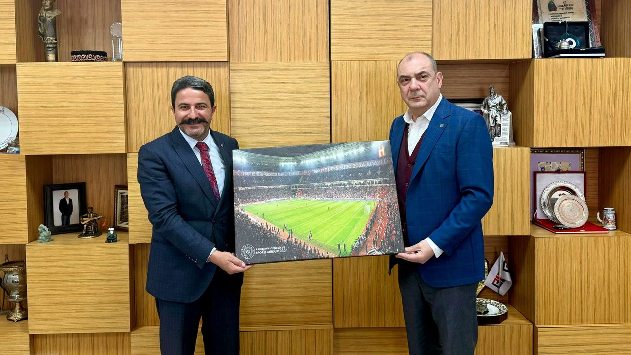 Ziyaret kapsamında, Ramazan ayında gençlik merkezlerinde düzenlenen iftar programlarına verdiği katkılardan dolayı ESO Başkanı Celalettin Kesikbaş’a İl Müdürü Hasan Kalın tarafından bir tablo hediye edildi.