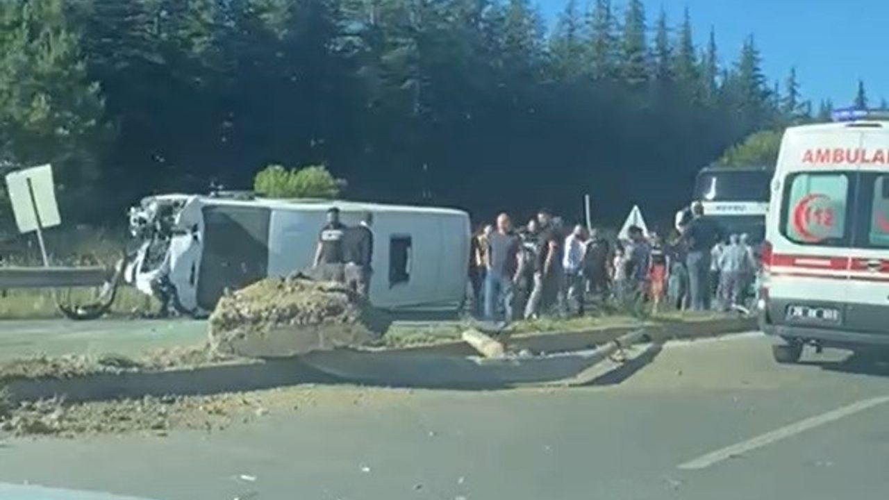 Çarpmanın etkisiyle minibüs karşı şeride geçerek yan yattı. Kazada sürücü Y.G. ile minibüste yolcu olarak bulunan 4 vatandaş yarandı. Toplam 5 yaralı hastaneye kaldırılırken kazayla ilgili inceleme başlattı.