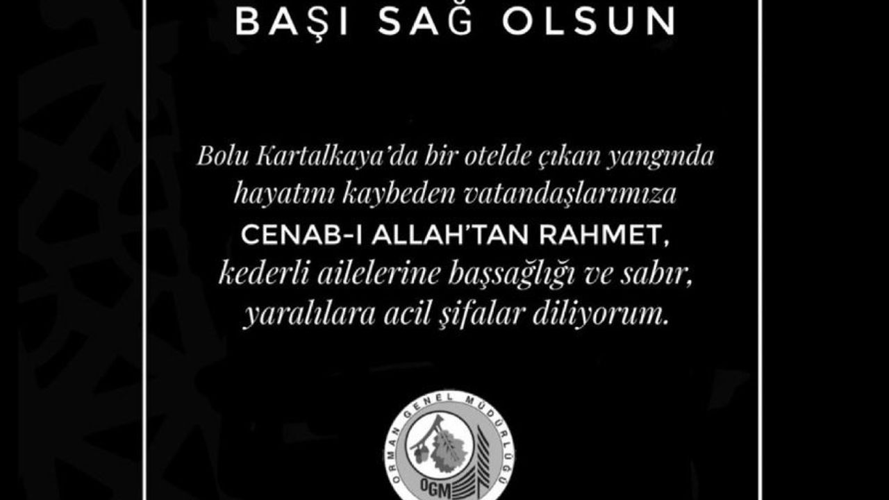 Eskişehir Orman Bölge Müdürlüğü'nden, Bolu Kartalkaya Kayak Merkezi'ndeki otel yangınında vefat eden vatandaşlar için taziye mesajı paylaşıldı.
