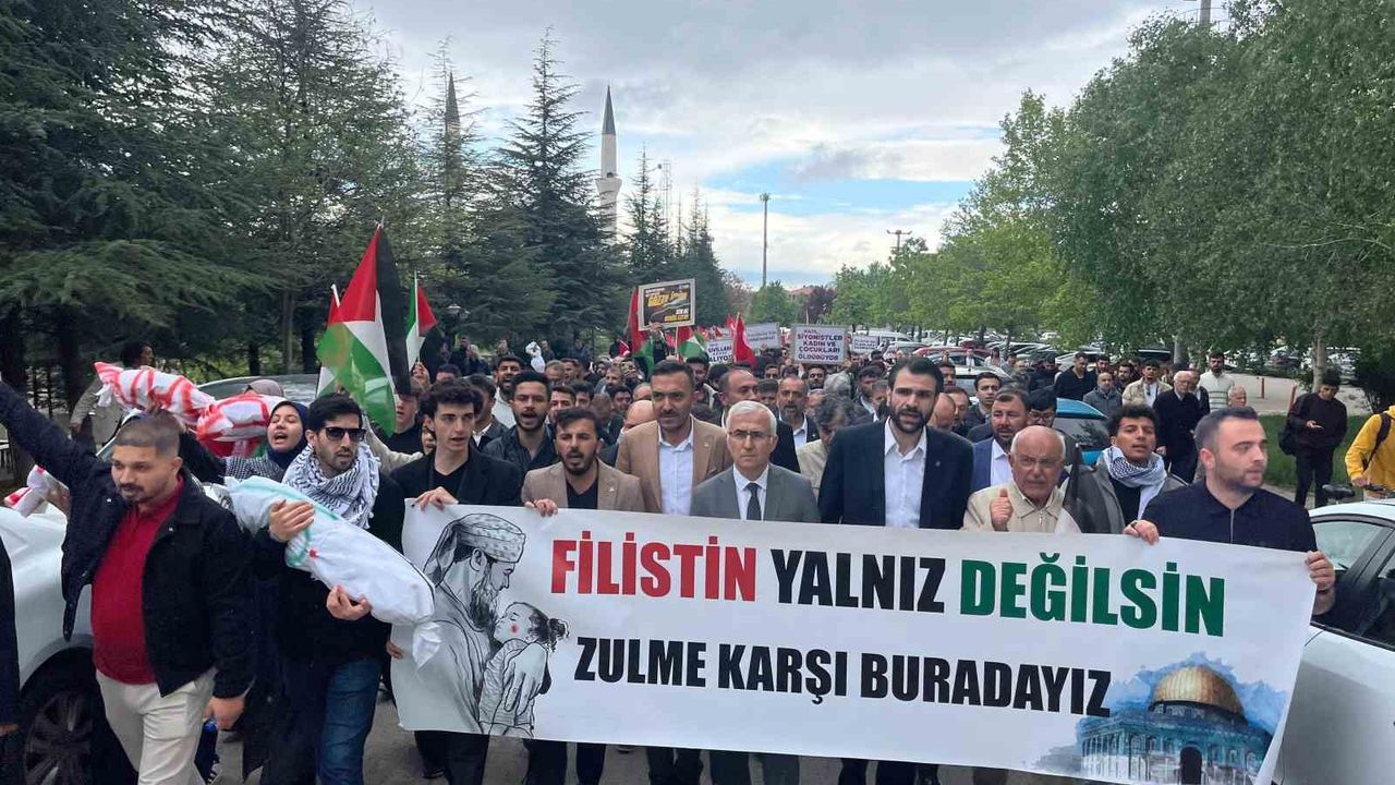 Eskişehir Osmangazi Üniversitesinde (ESOGÜ) öğrenciler ve Rektör Prof. Dr. Kamil Çolak’ın katılımıyla gerçekleştirildikleri yürüyüşte İsrail protesto edilirken Filistin’e destek verildi.