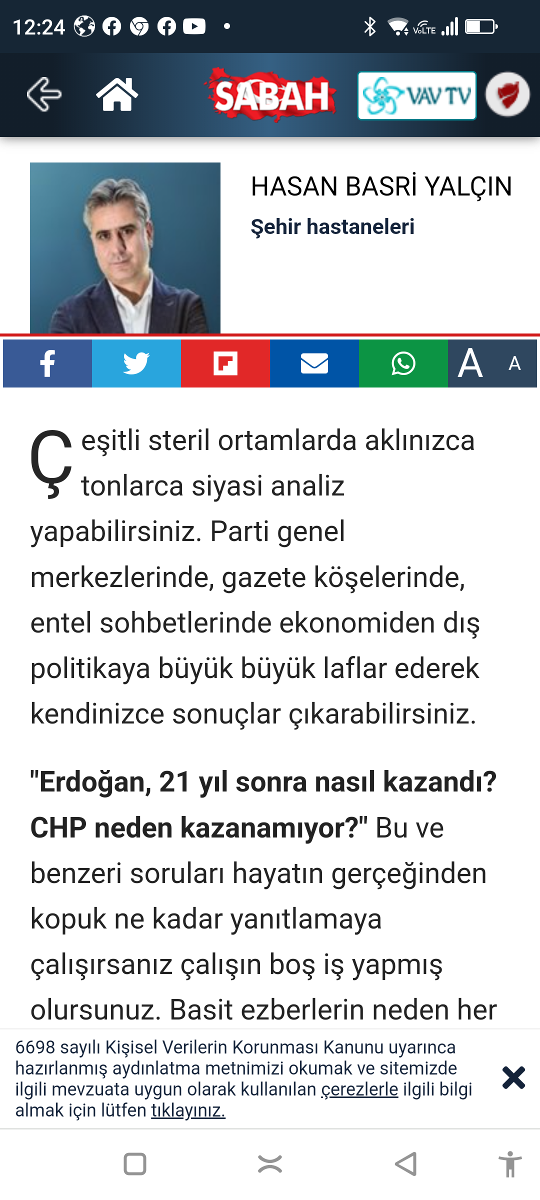 Hasan Basri Yalçın, İlgili köşe yazısında; Geçtiğimiz günlerde benzer bir tecrübe yaşadım. Dayım ciddi bir rahatsızlık geçirdi ve Eskişehir Şehir Hastanesi'ne kaldırdık. Kapısından girer girmez, muazzam büyüklükte bir hastanenin otel lüksünde sunduğu hizmete şahit olduk. Acilden beyin cerrahisine, nörolojiden yoğun bakım ünitesine tek kişilik odalarda kusursuz ve insan onuruna yakışan bir hizmet aldık. Gencecik doktorumuz Furkan Bey'in sadece bizi değil tüm hasta yakınlarını tane tane bilgilendirdiğini, ısrarlı sorulara sabırla cevap verdiğini gördük. Başhekim Yaşar Bildirici'nin bizzat tüm bu süreçleri yönettiğine ve bu devasa kompleksin tüm bölümleriyle ayrı ayrı ilgilendiğine şahit olduk. Şaşkınlık, gurur ve minnetle hastane yönetimini ziyaret ettim ve kendilerinden bazı bilgiler rica ettim. Sağolsun Yaşar Hoca her türlü sorumu yanıtladı ve bu başarılı işleyişin ardındaki motivasyon, liyakat ve emekleri anlattı. En ilginci de şehrin CHP'li yöneticileri bile hizmet alıyor ve memnuniyetlerini dile getiriyormuş. Ben çok ayrıntı öğrendim; ama özet olarak sizlere birkaç rakam vereyim de verilen hizmetin büyüklüğünü ve değerini anlamayan kalmasın. Hastane 333 bin metrekare kapalı alan, 1200 yatak, 2300 otopark kapasitesine sahip dev bir kompleks. 37 ameliyat salonunda 15 ayrı branşta ameliyatlar yapılabiliyor. Sıkı durun. Günlük ortalama 10 bin hasta kabul ediliyor. Beş yılda toplam 10 milyon hastaya hizmet verilmiş. Eskişehir'in nüfusu bir milyon yoktur. Bu da demek ki, herkes ortalama en az on kez hizmet almış bu hastaneden. Daha fazla söze gerek var mı? Vatandaşın bu tecrübesinin bir anlamı olmaz mı? Olur tabii ki. Muhalefet ne derse desin; millet göreceğini görüyor. Sözünü de söylüyor. görüşlerini aktardı