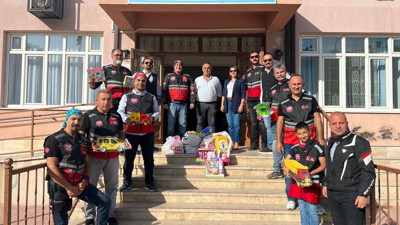 Eskişehir’de bir motor derneği ve Eskişehir İlgili Babalar Platformu topladıkları 444 oyuncağı anaokulu öğrencilerine dağıttı.