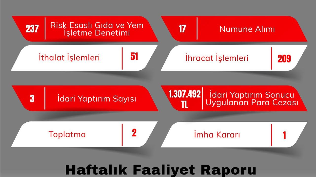 Ayrıca, 3 idari yaptırım kararı alınarak toplamda 1 milyon 307 bin 492 TL idari para cezası uygulandığı belirtildi. Denetimlerde 2 toplatma ve 1 imha kararı alındı.