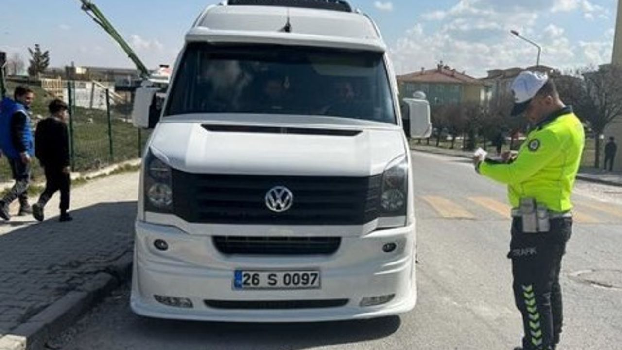 Eskişehir’de polis ekiplerince 54 okul servis aracı ve şoför kontrol edilirken kusurlu bulunan 4 servis ve şoförüne toplam 8 bin 306 TL para cezası kesildi.