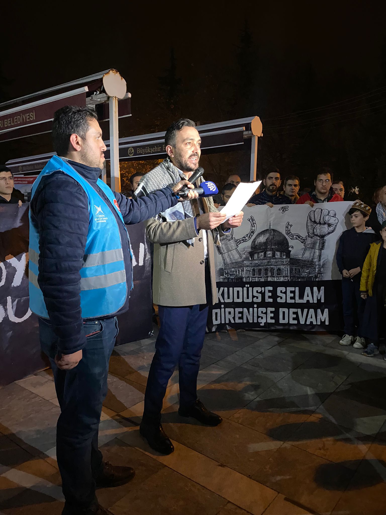 TÜGVA Eskişehir Temsilciliği öncülüğünde ve bazı sivil toplum kuruluşlarının katılımı ile Amerika'nın, Gazze'de "insani ateşkes" önerisini reddetmesine karşı Eskişehir Sami Ramazanoğlu Camii önünde basın açıklaması düzenlendi.