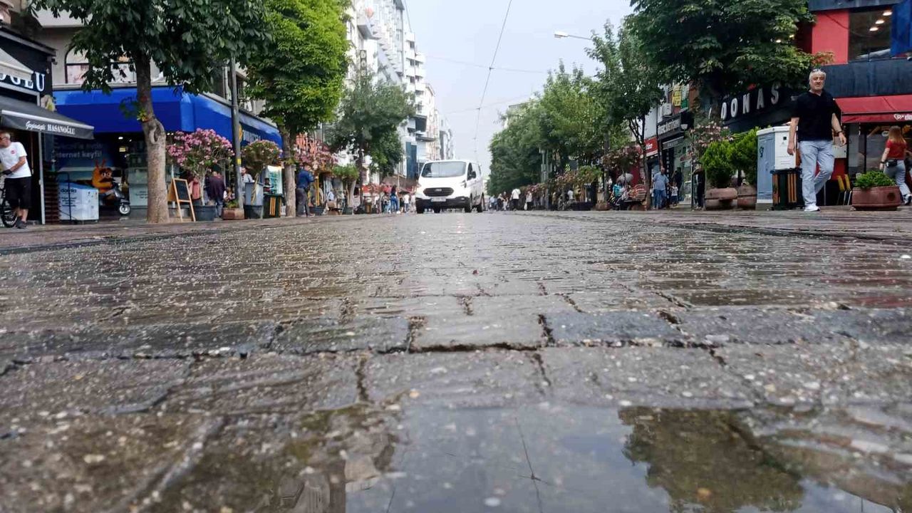 Eskişehir’de etkili olan ceviz büyüklüğündeki dolu yağışı kent yaşamını olumsuz etkilerken, o anlarda dışarıda bulunan vatandaşlar zarar görmemek için kendilerini ve eşyalarını korumaya çalıştı.