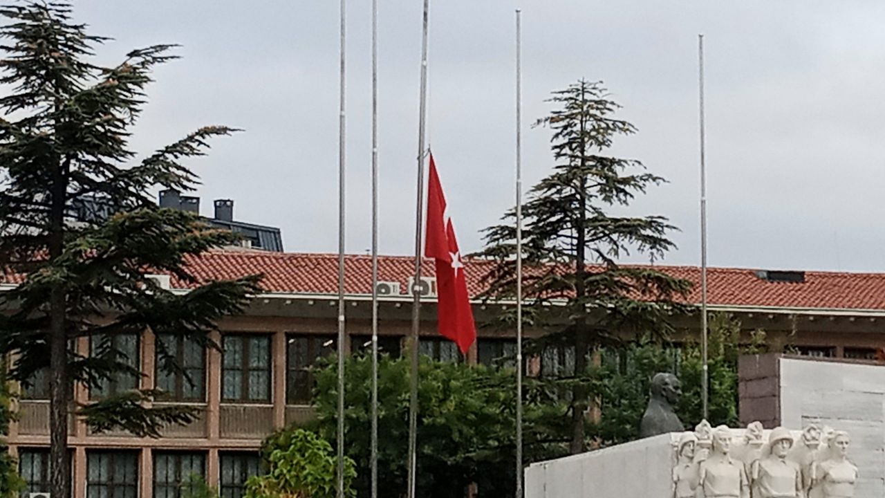 İsrail’in Gazze’deki hastaneye yönelik saldırısı sonrası ülke genelinde 3 günlük ulusal yas ilan edilmesiyle Eskişehir’deki bayraklar da yarıya çekildi.
