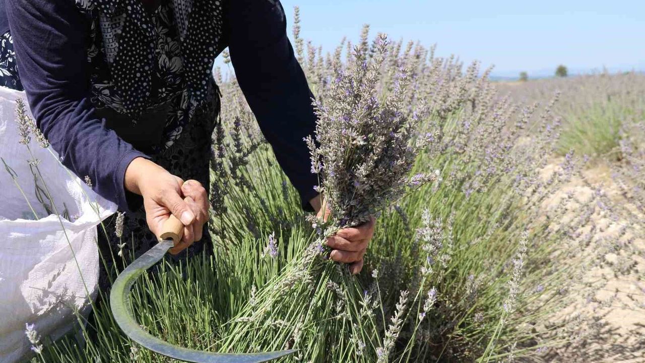 Eskişehir’de yağdan gazoza kadar birçok ürünün elde edildiği lavantanın el yordamı ve oraklarla hasadına başladı.
