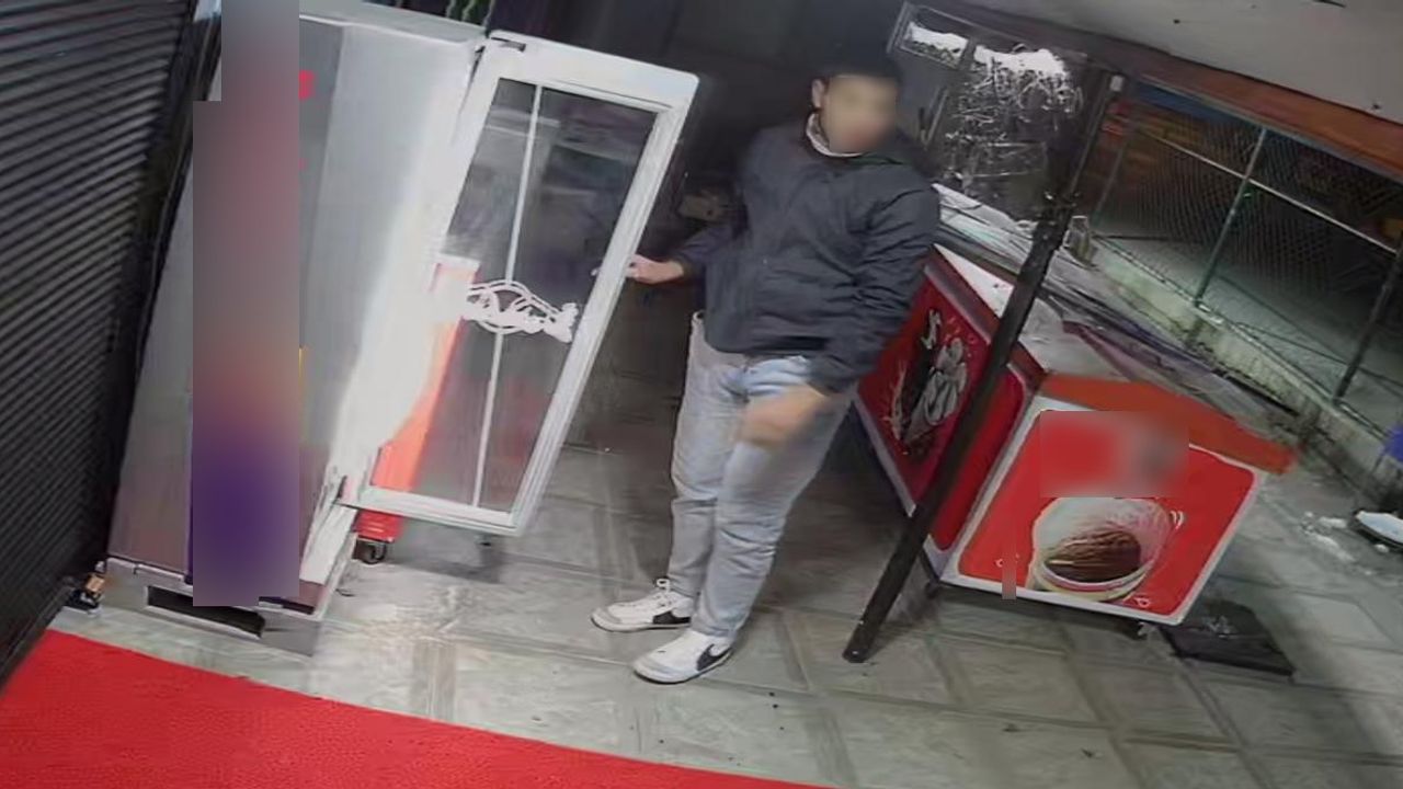 Eskişehir'de bir marketin güvenlik kamerasına yansıyan olayda, işletmenin önünde bulunan içecek dolabını açan şüpheli ve arkadaşı, toplamda 3 koli enerji içeceğini alarak oradan uzaklaştı.