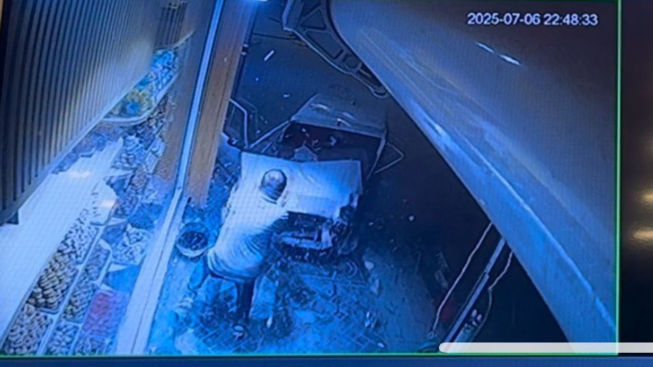 Görüntülerde, dönüş yapmak isteyen araca karşı yönden gelen Tofaş marka araç çarptığı, çarpmanın etkisi ile direksiyon hâkimiyeti kaybolan otomobilin önce kaldırıma, sonra da oradaki bir işletme vitrinine, en son da kaldırımda yürüyen bir vatandaşa çarptığı görüldü.