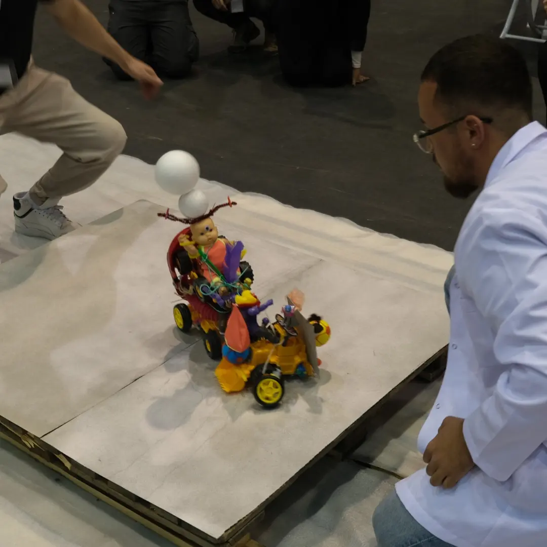 İkişerli 8 takımın oyuncak ve hurda parçalardan yaptığı çeşitli robotlar hazırlanan özel platformda eleme usulüyle kıyasıya yarıştı. Mücadele eden robotların renkli görüntüsü dikkat çekerken, büyük çekişmeye sahne olan yarışmayı tribünlerden öğrenciler heyecanla izledi. Yarışmanın ardından birinci olan takıma 3 bin lira, ikinci olan takıma da 2 bin lira ödül verildi.