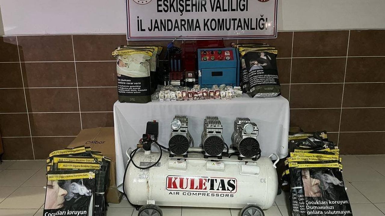 Eskişehir’de jandarma ekiplerince bir şüphelinin adresinde yapılan aramada 11 paket 1 kilogramlık sahte bandrollü kıyılmış tütün, 632 adet darphane makaron bandrolü ve suç unsuru malzeme ele geçirildi.
