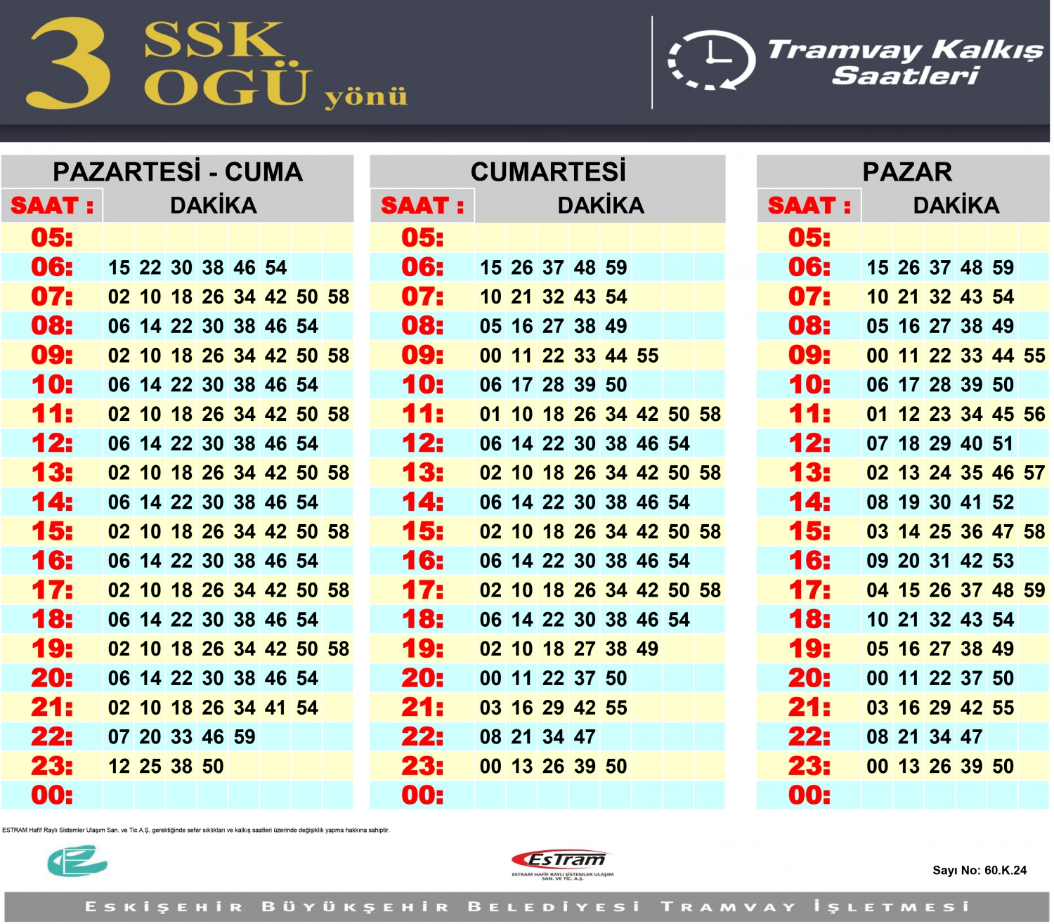 EskişehirBüyükşehir Belediyesi 9 Eylül Pazartesi günü itibarıyla, kış tarifesine geçiş yapılacağı belirtildi. Bu değişiklik, okul döneminin başlamasıyla birlikte uygulamaya konacak.