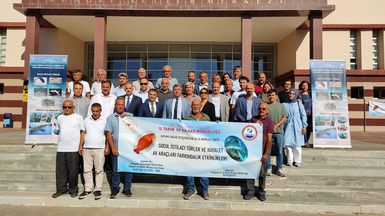 İstilacı türlerin zararları ve mücadele yöntemleri ile sucul hayatı tehlikeye atan hayalet avcılık ve hayalet av araçları hakkında vatandaşların, özellikle amatör ve ticari balıkçıların farkındalığını arttırmak amacıyla düzenlenen toplantıya Eskişehir İl Tarım ve Orman Müdür Yardımcısı Kemal Çevik, Balıkçılık ve Su Ürünleri Genel Müdürlüğü Biyoçeşitlilik ve Çevre Koordinatörü Derya Özcan, Eskişehir Osmangazi Üniversitesi Öğretim Üyesi Prof. Dr. Özgür Emiroğlu, Eskişehir Osmangazi Üniversitesi Öğretim Üyesi Doç. Dr. Sadi Aksu, Eskişehir İl Tarım ve Orman Müdürlüğü Hayvan Sağlığı Yetiştiriciliği ve Su Ürünleri Şube Müdürü Zekeriya Ar, teknik personel, amatör ve ticari balıkçılar, balıkçı dernekleri ve ilgili kuruluşların üyeleri katıldı.