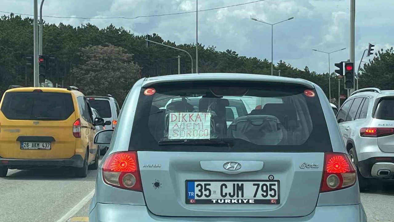 Eskişehir’in Büyükdere Mahallesi Nabi Avcı Bulvarı’nda trafikte seyreden bir aracın arka camındaki ‘Dikkat Acemi Sürücü’ yazısı görenlerin ilgisini çekti. Sürücünün, diğer sürücüleri uyarmak ve gülümsetmek amacıyla yazdığı not, trafikte farkındalık oluşturdu. Yazı, yoldaki diğer sürücülerin dikkatini çekerek kısa sürede ilgi odağı oldu.
