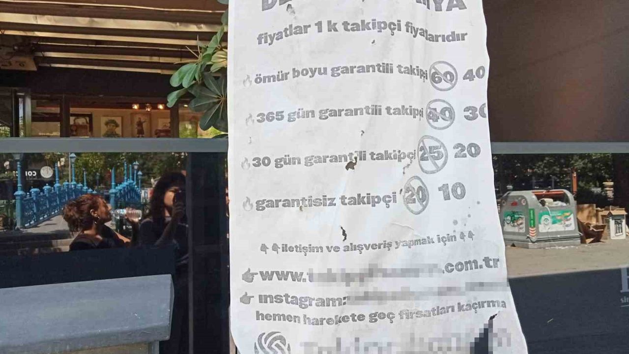 Eskişehir Adalar’da elektrik direğinde asılı olan afişte, sosyal medya platformlarında takipçi satın alma hizmeti olduğu iddia edildi. Dikkat çeken bu görsel, sosyal medya platformlarında takipçi satın almanın yaygınlaştığını ve sokaklara afiş asılacak kadar çok talep gördüğünü gözler önüne serdi. Afişte yer alan bilgilere göre, internet sitesinden ya da sosyal medyadan iletişime geçip takipçi satın alma işlemi gerçekleştiriliyor.