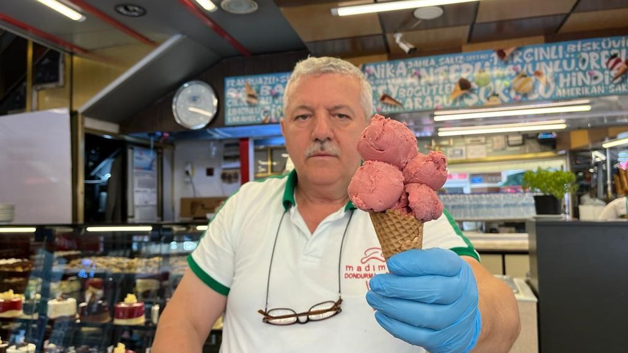 “Aşk-ı Dondurma adı altında kırmızı meyveleri içeren bize özgü dondurma çıkardık. Bunun içeriğini de söylemiyoruz müşterilerimize. Dondurmayı biz ürettiğimiz için sırrını vermek istemiyoruz. Çok tahminde bulunan oluyor ama doğru karışımı bulan çok az. Genellikle kadınların ve turistlerin çok tercih ettiği bir mayhoş tada sahip. Genel olarak çok beğeniliyor.”