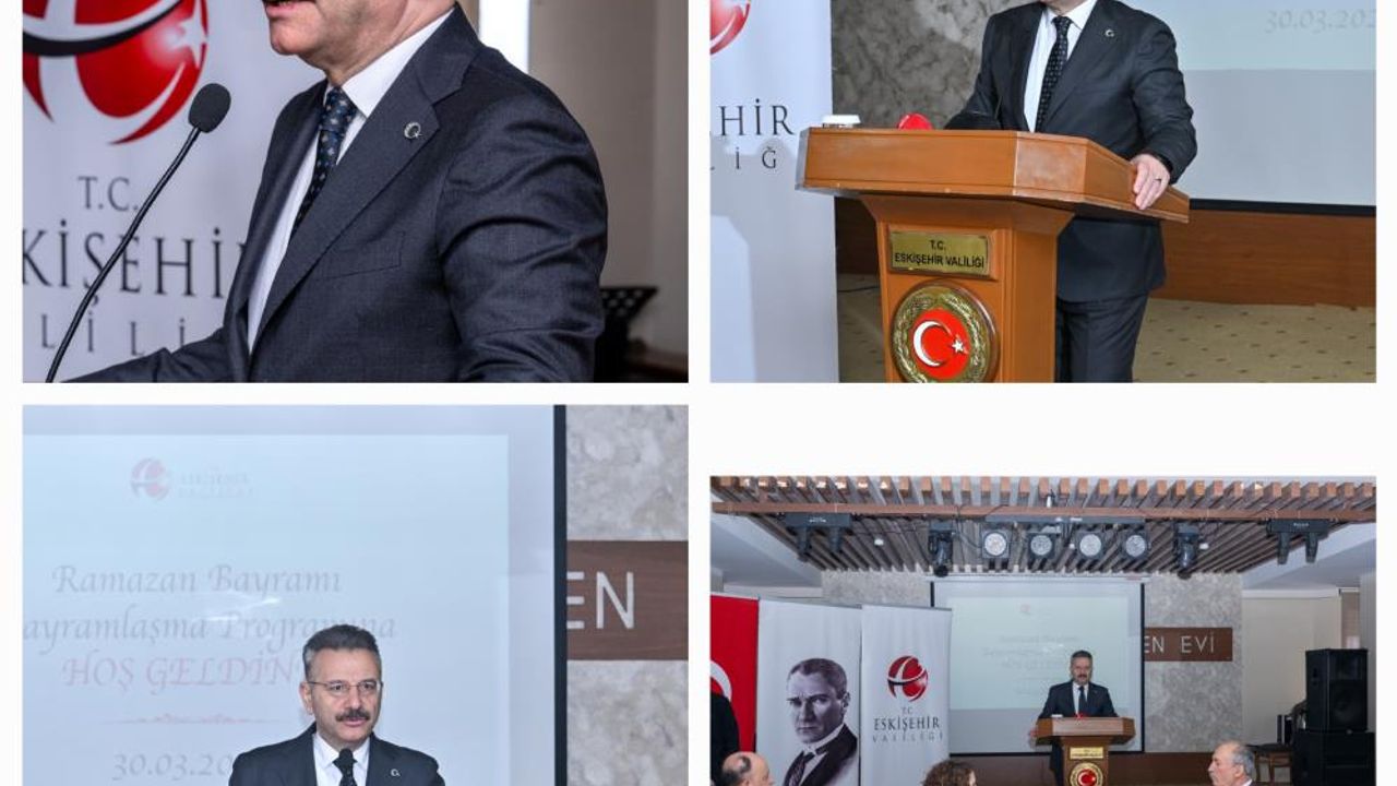 Vali Aksoy, "Bayramlarımız, küskünlüklerin ortadan kalktığı, dostlukların pekiştiği özel günlerdir. Eskişehir’in her kesimini temsilen burada bulunan siz kıymetli konuklarımızın bayramını yürekten kutluyor, sizlerin şahsında tüm vatandaşlarımızın bayramını tebrik ediyorum. Eskişehir’de huzur ve güven ortamında bir bayrama daha kavuşmanın mutluluğunu yaşıyoruz. Amacımız, Eskişehir’i bulunduğu noktadan daha ileriye taşımaktır. Bu doğrultuda tüm kurum ve kuruluşlarımızla iş birliği içerisinde çalışmalarımızı büyük bir gayretle sürdüreceğiz. Bayramların üzüntülerle değil, sevinçlerle dolu geçmesi hepimizin arzusu. Bu vesileyle sürücülerimize trafik kurallarına uymaları gerektiğini bir kez daha hatırlatmak istiyorum. Trafikte yapılacak küçük bir hata, çok olumsuz sonuçlar doğurabilir. Hep birlikte sağlıklı, huzurlu bir bayram geçirmeyi temenni ediyoruz. Sizlere katılımınız için ayrı ayrı teşekkür ediyor, sevgi ve saygılarımı sunuyorum. Hepinizin bayramı mübarek olsun, sağlıklı ve huzurlu günler diliyorum" dedi.