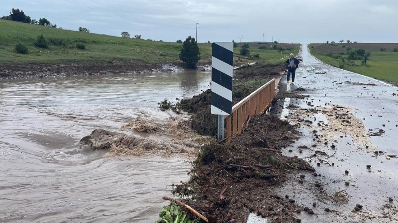 Eskişehir’in Sarıcailyas Mahallesi’nde sağanak sonrası meydana gelen sel, yıllardır akmayan dereyi taşırıp karayolunda çökme tehlikesi oluşturdu.