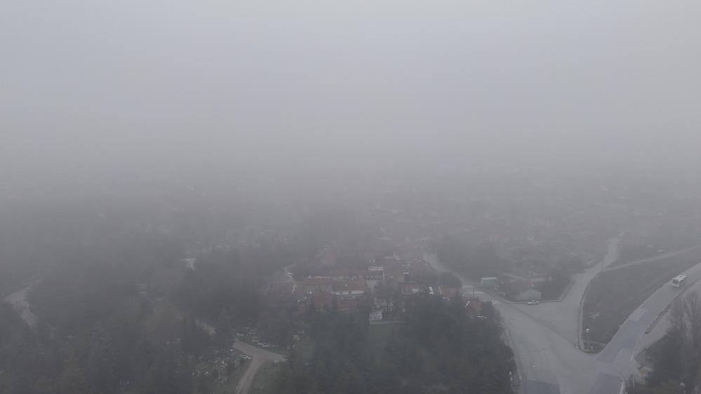 Öte yandan, özellikle yüksek kesimlerde sisin yoğun olduğu gözlemlendi. Dron ile havadan görüntülenen sisli kent manzarası dikkat çekerken yüksek kesimlerde ise görüş mesafesi düştü.