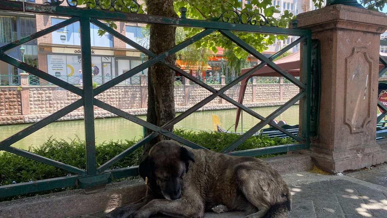 Sokak köpekleri, güneşin yakıcı etkisinden korunmak için gölgelerde dinlenmeye başladı. Asfaltın ısındığı bölgelerde hareketsiz kalan hayvanların, sıcaklığın etkisiyle enerjilerinin düştüğü gözlendi.