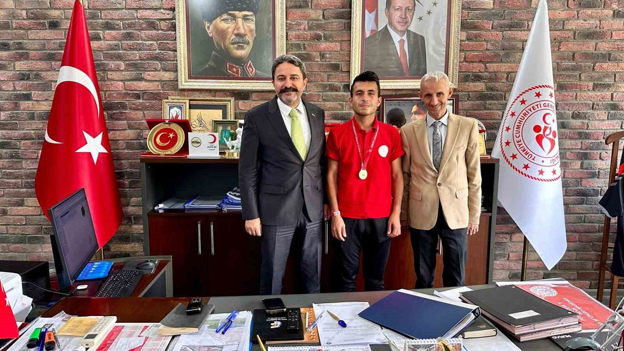 Eskişehir Doğan Aslan Bey Yurdu öğrencisi Okan Yumuk, YURTLİG Türkiye Atletizm Şampiyonası 3000 metre Cross yarışında Türkiye birincisi olarak büyük bir başarıya imza attı. Şampiyon sporcu, başarısının ardından İl Gençlik ve Spor Müdürü Hasan Kalın’ı makamında ziyaret etti.