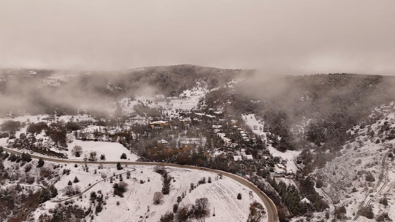 Eskişehir’in yüksek kesimlerine yağan kar ve oluşan sis bölge sakini Alp Ceylan tarafından dron ile havadan görüntülerinken, ortaya kartpostallık manzaralar çıktı.