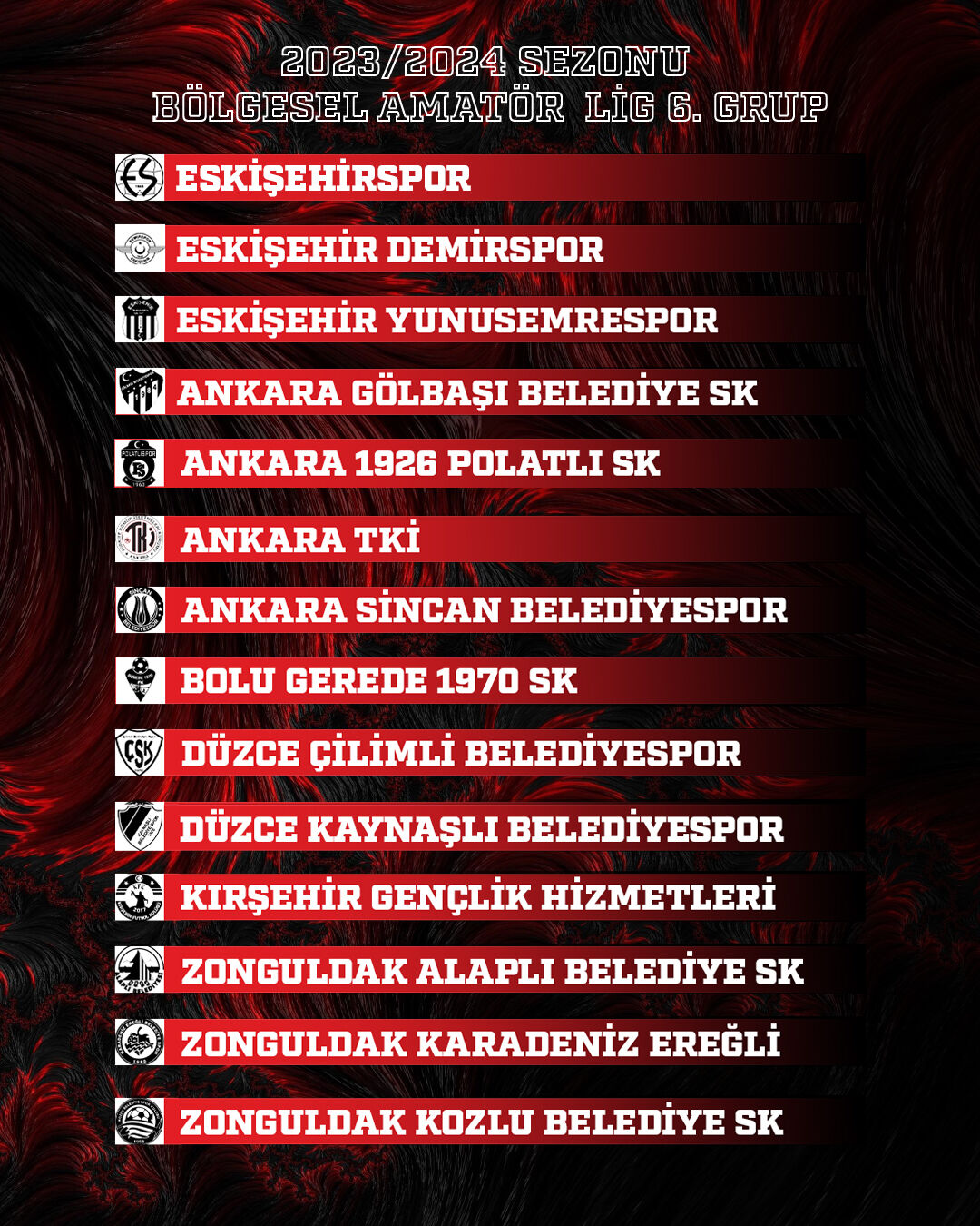 Kulüp sosyal medya hesabından yaptığı paylaşıma göre Eskişehirspor, Bölgesel Amatör Lig’de 6. Grupta yer alacak.