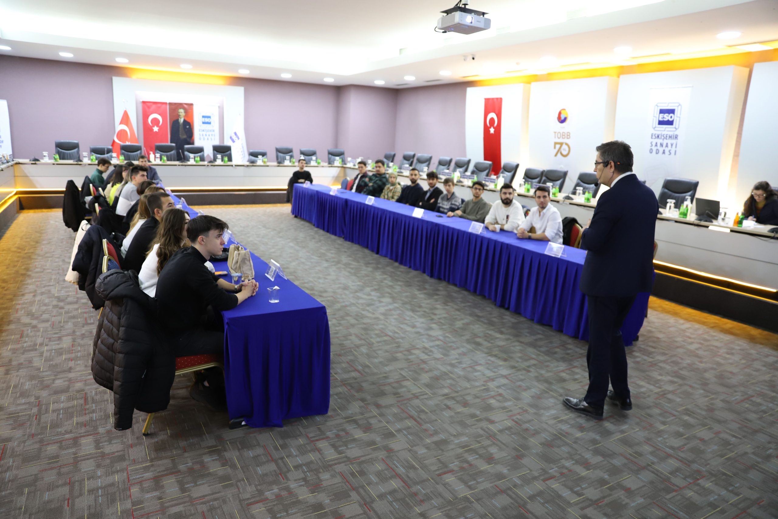 ESO Meclis Salonunda gerçekleştirilen toplantı; ESO Genel Sekreteri Volkan Günaydın ve Eskişehir Osmangazi Üniversitesi’nin 25 farklı öğrenci kulübünün temsilcilerinin katılımlarıyla yapıldı. Toplantının açılışında Eskişehir Sanayi Odası’nın faaliyetleri ve Eskişehir sanayisinin güncel durumu hakkında Genel Sekreter Günaydın tarafından bilgilendirme sunumları yapıldı.