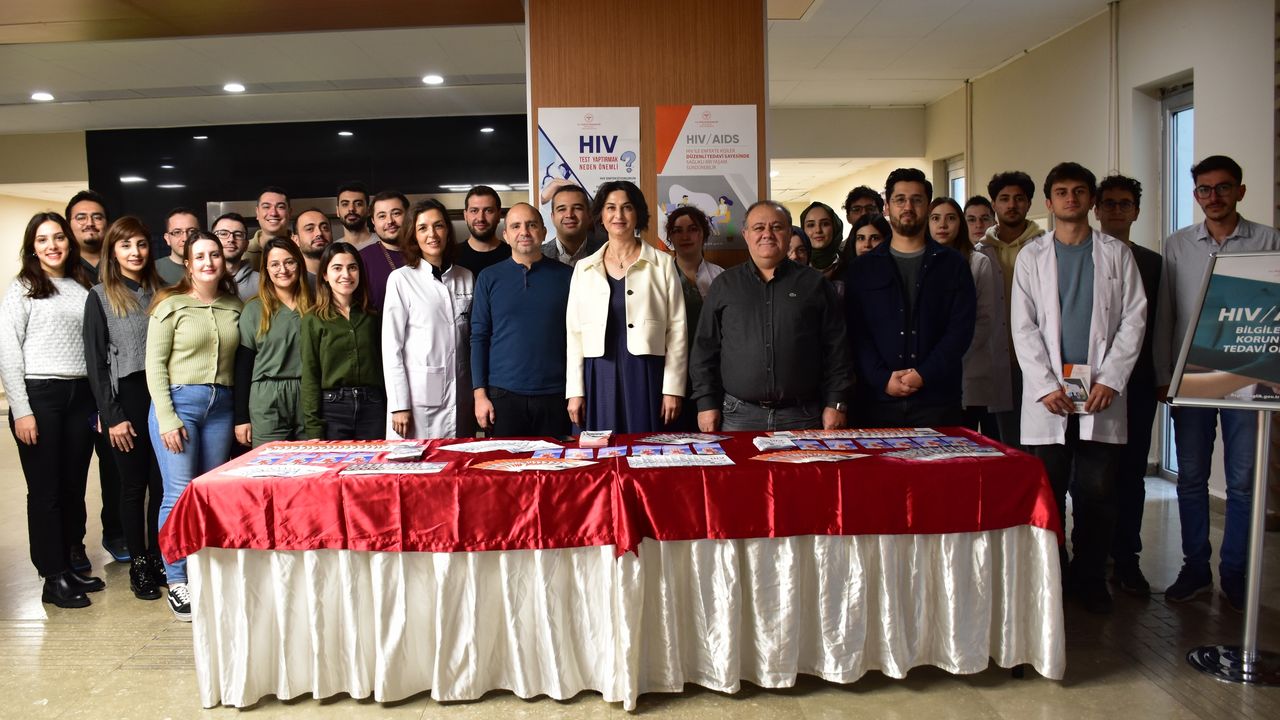 Nurettin Erben ve Dr. Öğr. Üyesi Hasip Kahraman katılım sağladı. Etkinlikte Tıp Fakültesi öğrencileri hastalar ve hasta yakınlarına bilgilendirici broşürler dağıtırken, Enfeksiyon Hastalıkları ve Klinik Mikrobiyoloji Ana Bilim Dalı Başkanı Prof. Dr. Elif Doyuk Kartal şu açıklamayı yaptı: “Bu yıl 1 Aralık Dünya AIDS Günü, UNAIDS öncülüğünde