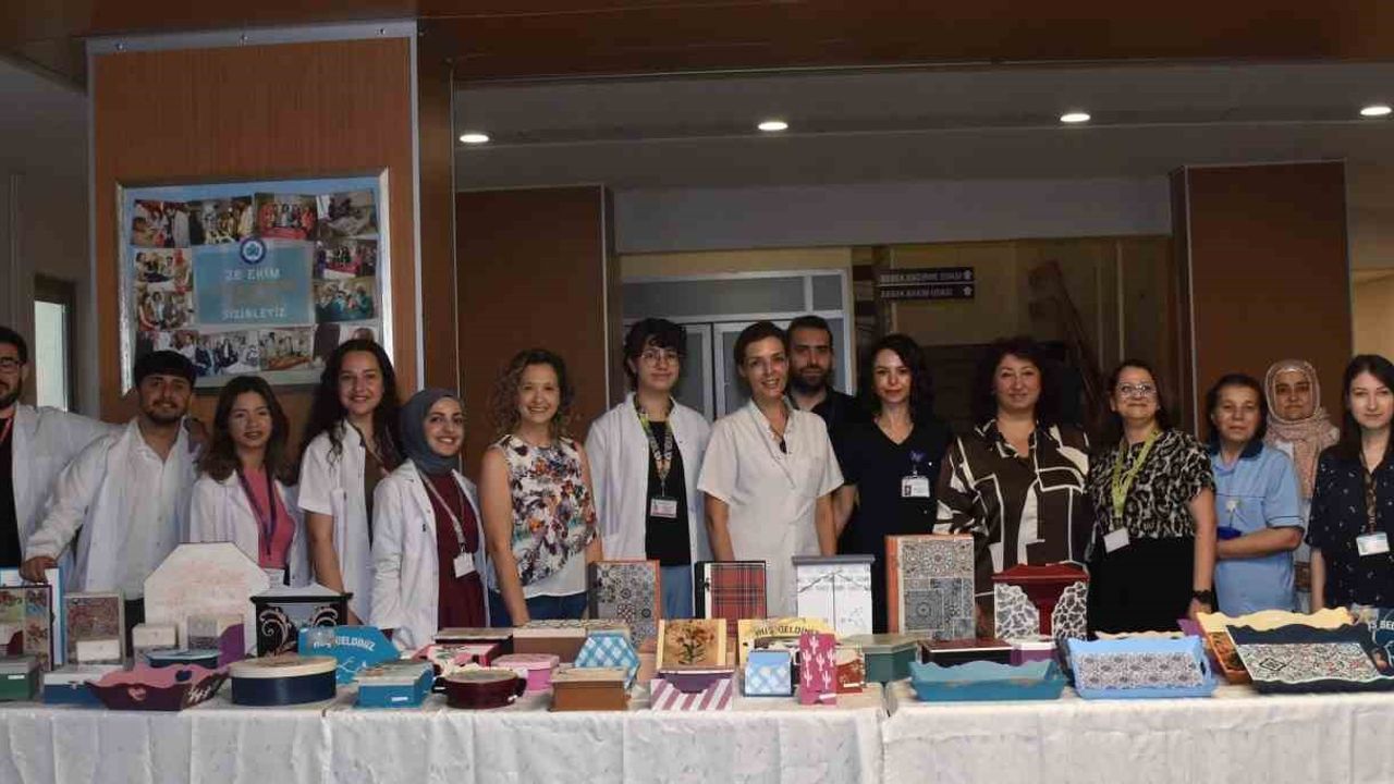 Eskişehir Osmangazi Üniversitesi (ESOGÜ) Sağlık Uygulama ve Araştırma Hastanesi Ruh Sağlığı ve Hastalıkları servisinde "Uğraş Tedavisi" uygulanan hastaların hazırladıkları el işi ürünler, açılan sergiyle satışa çıkarıldı.