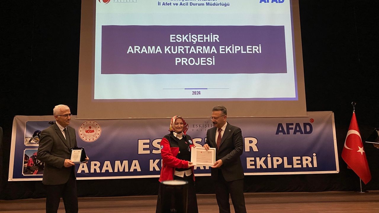 “Eskişehir Arama Kurtarma Ekipleri Projesi” kapsamında aralarında Eskişehir Osmangazi Üniversitesi (ESOGÜ)’nin de bulunduğu 2 üniversite ve 20 firmadan gönüllüler eğitim aldı. Akreditasyon programında Vali Hüseyin Aksoy tarafından ESOGÜ Rektörü Prof. Dr. Kamil Çolak’a plaket takdim edilirken, eğitimlerini başarıyla tamamlayan ESOGÜ Arama Kurtarma Ekibi (ESOGÜAK) adına ekip lideri Serap Mergen’e sertifika verildi.