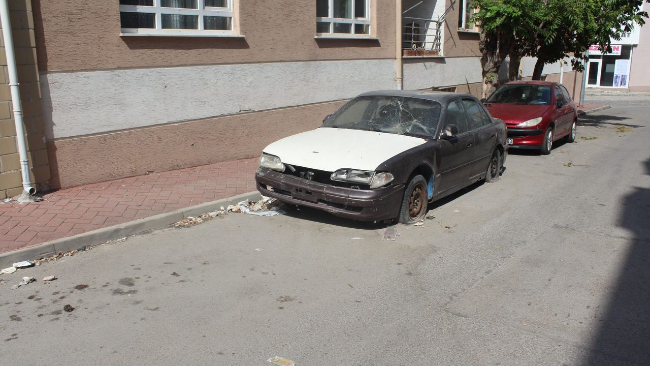 Eskişehir’de bir sokakta uzun zamandır park halinde duran, eski, plakasız ve camları kırık otomobil vatandaşlara merak konusu oldu.