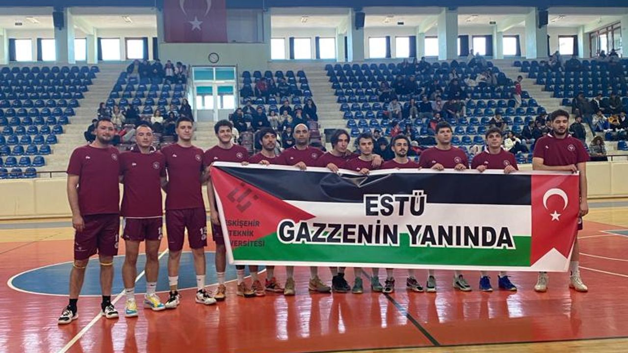 Eskişehir Teknik Üniversitesi (ESTÜ) basketbol takımı, Türkiye Üniversite Sporları Federasyonu Üniversiteler Arası Basketbol Bölgesel Ligi müsabakasında Filistin'e destek pankartı açtı