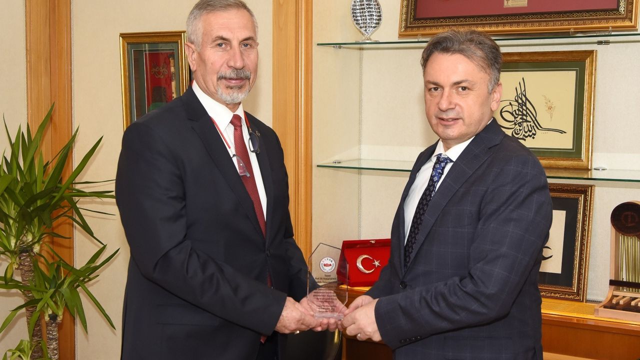 Eskişehir Mezunları ve Eskişehir’den Yetişenler Vakfı (ESVAK) Merkez Mütevelli Heyeti üyeleri Eskişehir Anadolu Üniversitesi Rektörü Prof. Dr. Kemal Şenocak’ı makamın da ziyaret ederek plaket takdim ettiler.