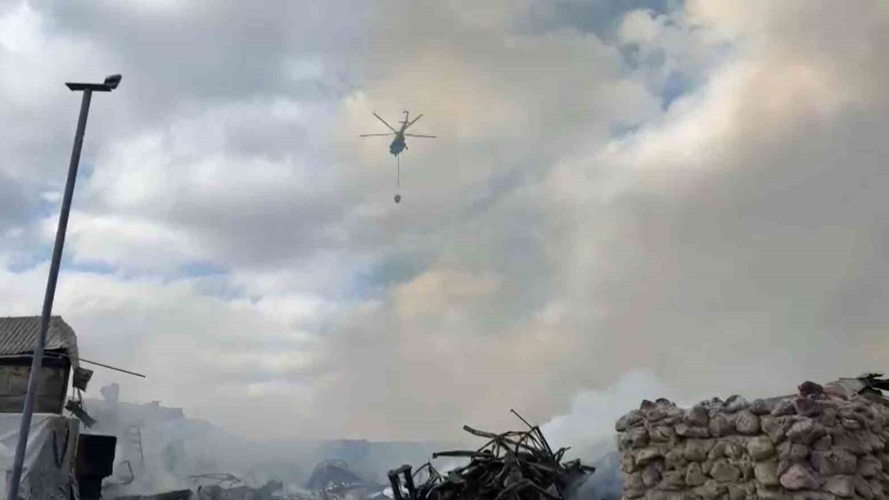 Afyonkarahisar’da orman ürünleri fabrikasında dün akşam çıkan yangının söndürülmesi için helikopterler ile havadan müdahale başladı.