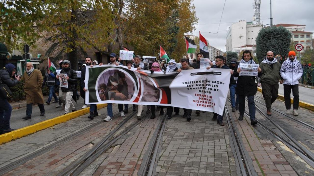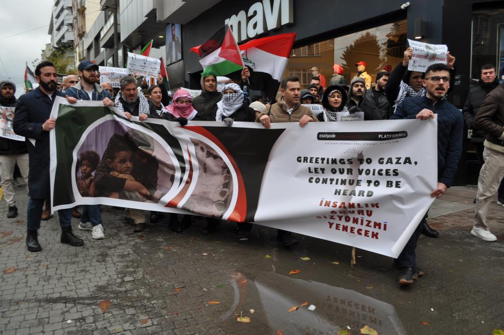 Saat 15.00'da Valilik Meydanı'nda yürüyüşe başlayan Eskişehir Uluslararası Öğrenci Platformu'ndan 300 öğrenci, İki Eylül Caddesi ve İsmet İnönü Caddesi'nden geçerek Ulus Anıtı'na kadar yürüyüş yaptı. Yürüyüş esnasında 'Free Palestine (Filistin'e özgürlük), kahrolsun İsrail ve Amerika' sloganları atıldı.