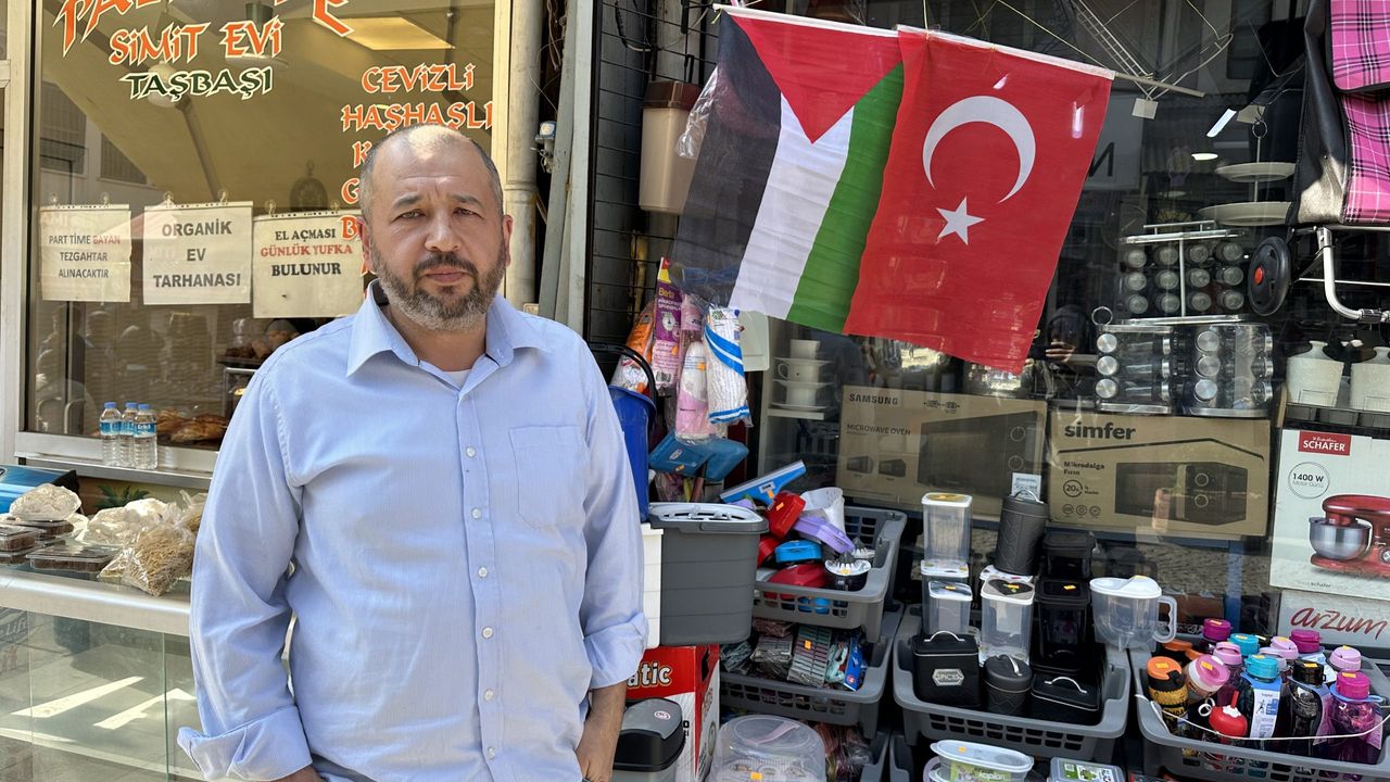 Eskişehir’de 30 yıldır esnaflık yapan Salim Bahadır Dede, Müslüman ülkelerin ve vatandaşların Filistin’de yaşananlara tepki göstermesi gerektiğini dile getirdi. Masum insanların çok fazla zarar gördüğünü ifade eden Dede, “Bu iş kurda kuzu emanet etmek gibi, orada can yakıyorlar, tepki maksatlı bayrak astık. Bu iş Müslümanların en büyük yanlışı, çünkü Gazzeli halk şuanda yalnız. Çocuklar ölüyor, büyükler sessiz kalıyor. Burada elini taşın altına koyabilecek tek ülke Türkiye gözüküyor. Müslümanların birleşmesi lazım ki bu zulüm bitsin. Başka bir çözüm yok. Oradaki halka Allah yardım etsin. Biz oradaki bir anne ile babanın tırnağı olamayız. Benim buraya bir bayrak asmamın hiçbir ehemmiyeti yok, bu sadece benim kişisel tepkim.