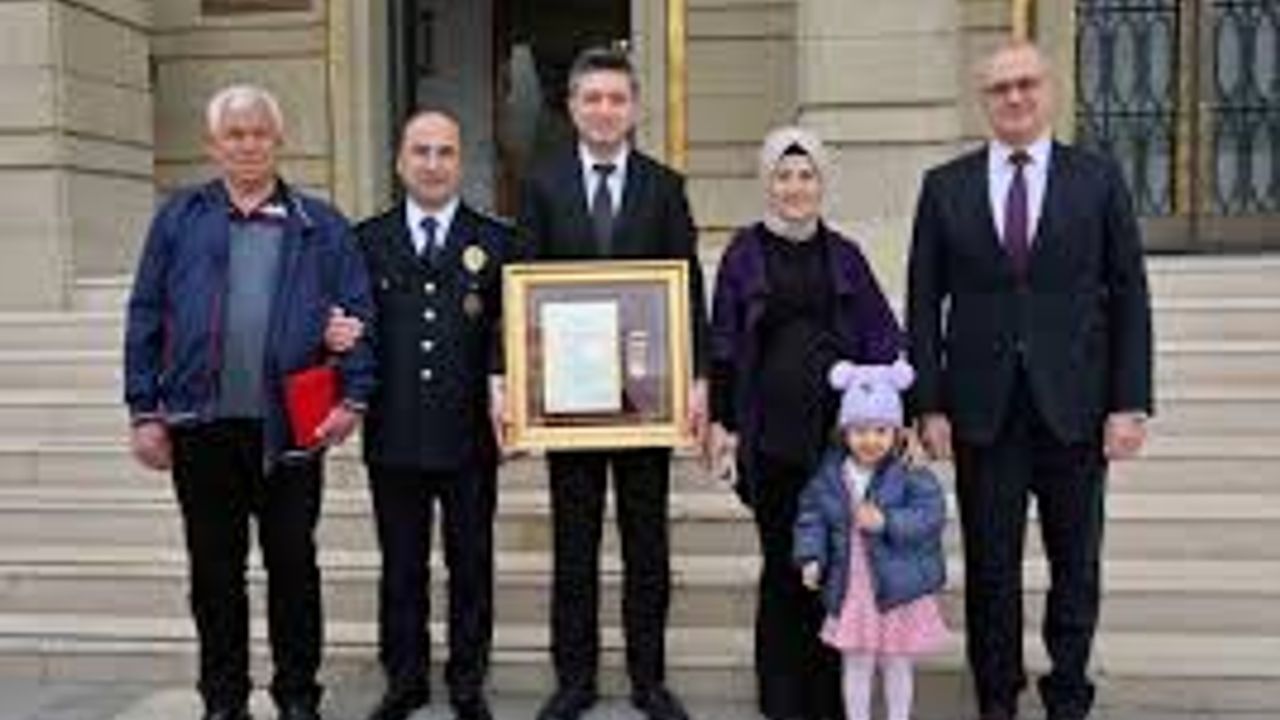 Eskişehir'de Gazi Polis Memuru Hasan Alpak'a Vali Hüseyin Aksoy tarafından Devlet Övünç Madalyası ve Beratı takdim edildi.