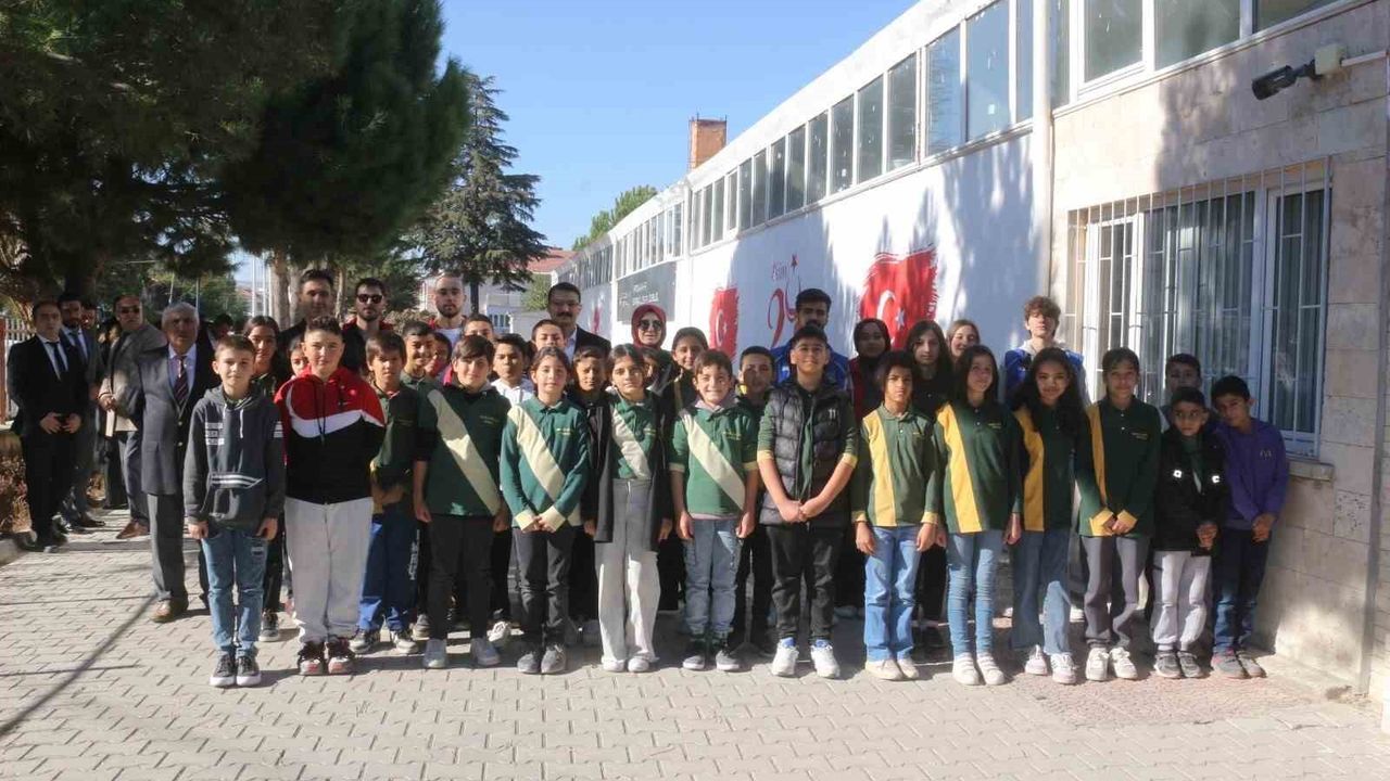 Afyonkarahisar’ın Emirdağ ilçesinde Cumhuriyetin 101. yıldönümünü kutlamaları çerçevesinde ilçe spor binası grafiti tekniğiyle süslendi.