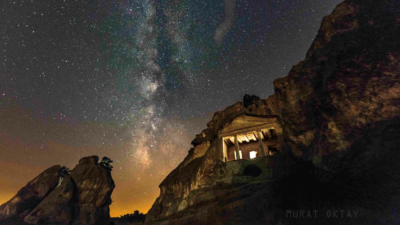 Eskişehirli astrofotoğrafçı Murat Oktay zaman atlamalı fotoğrafçılık tekniğini (timelapse) kullanarak Gerdekkaya anıtı ve Yazılıkaya anıtını samanyolu ile aynı karede buluşturdu.