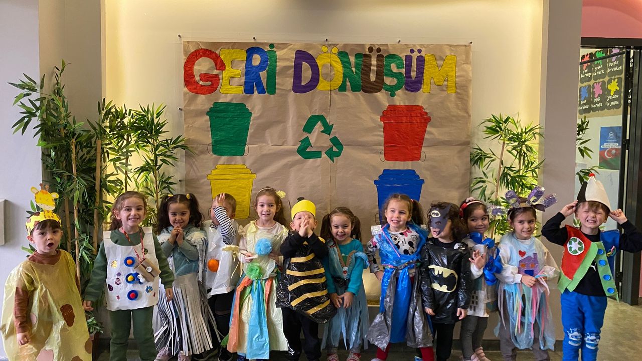 Anaçağ Anaokulu, tüm yaş gruplarından öğrencilerin geri dönüşüm malzemelerinden yaptıkları tasarımlarla defile düzenledi.