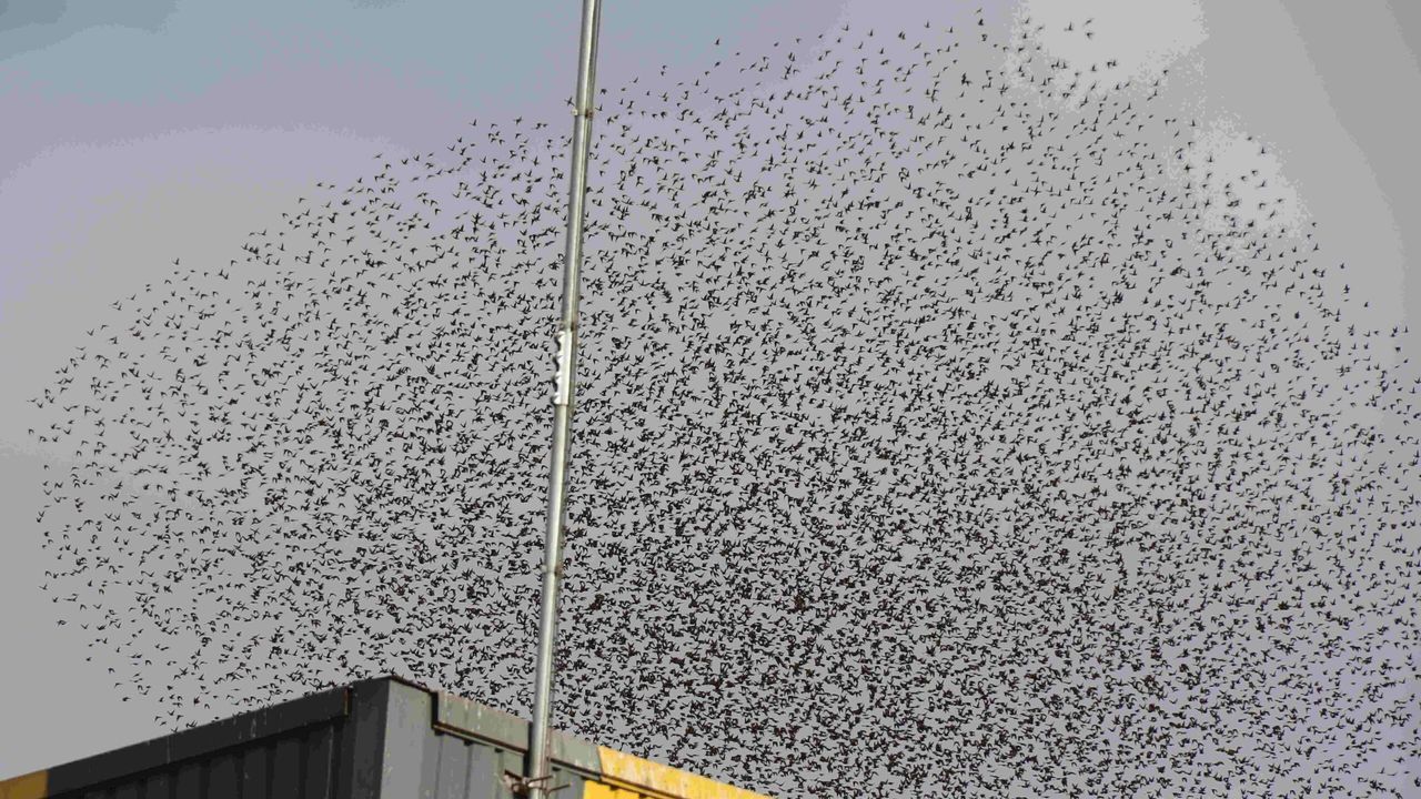 Eskişehir - Seyitgazi yolu üzerinde bulunan Katı Atık Dönüşüm ve Enerji Üretim Tesisi yakınlarında, binlerce kuştan oluşan bir sürünün gökyüzündeki görüntüsü izleyenleri hayran bıraktı.