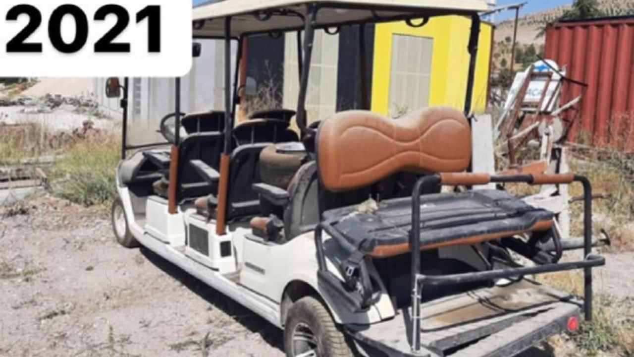 Gücüyener: “Eskişehir Valiliği tarafından yürütülen BEBKA projesi kapsamında Seyitgazi’ye 2 adet elektrikli golf aracı gelmişti. Seyitgazi Belediyesi, tarafından kullanılan elektrikli golf aracının son hali içler acısı… Hurdalıkta…” ifadeleriyle tepkisini dile getirdi.