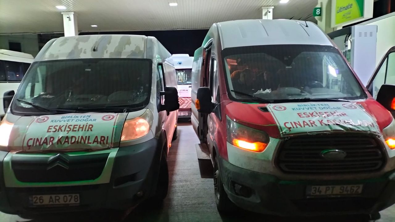 Depremzedelerimize ihtiyaçlarını karşılamak i yola çıkan Eskişehir Çınar Kadınları Haber Ötesi ve Mavi Radyo ekibi Dün gece yola çıktı