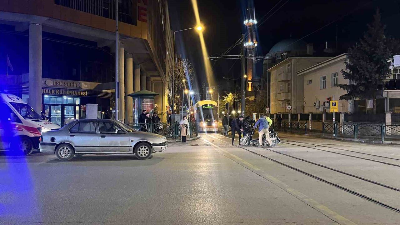 Eskişehir’de otomobil ile elektrikli bisikletin çarpışması sonucunda meydana gelen trafik kazasında şans eseri yaralanan olmazken, tramvay seferleri aksadı.