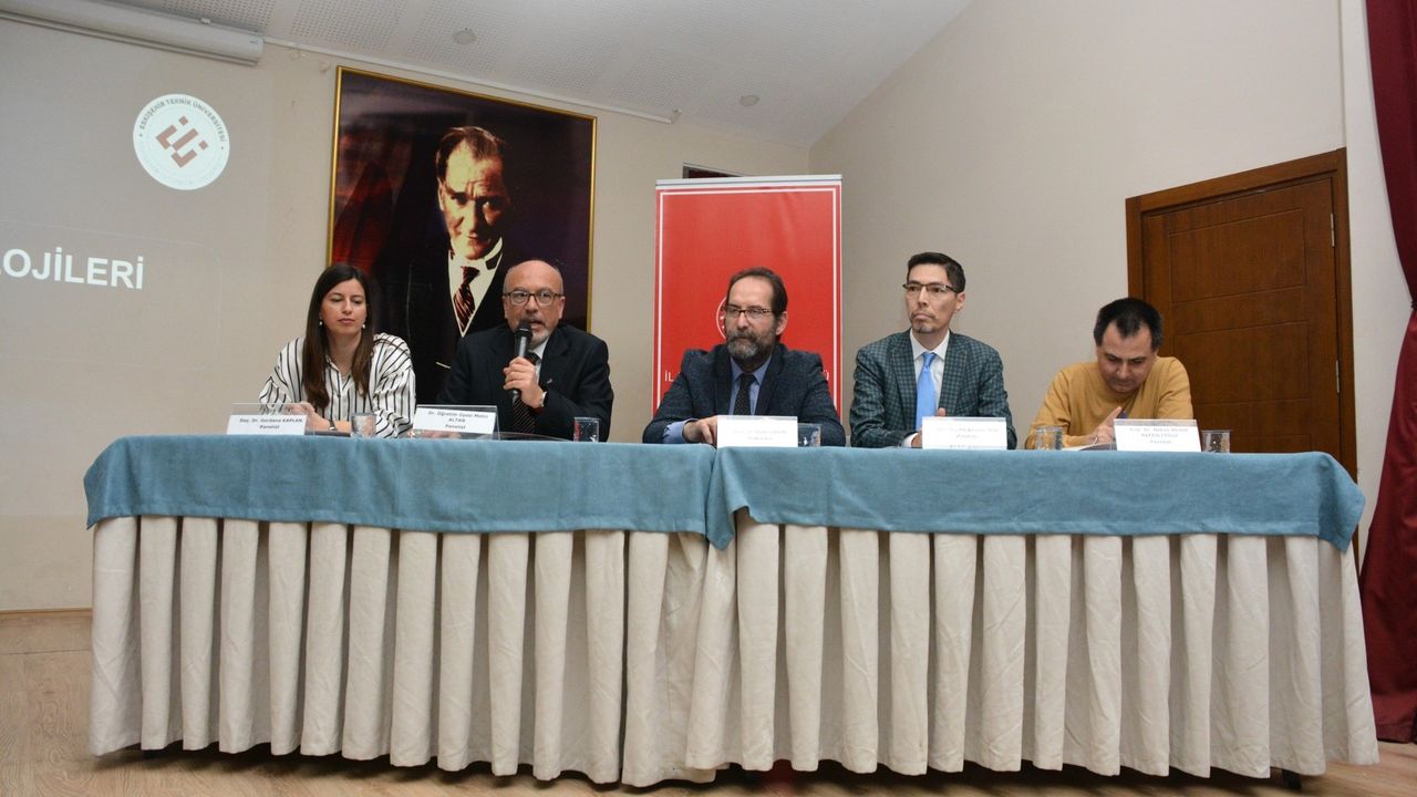 Gazi Mesleki ve Teknik Anadolu Lisesinde düzenlenen panel Eskişehir Teknik Üniversitesi Yer ve Uzay Bilimleri Enstitüsü Müdürü Prof. Dr. Alper Çabuk moderatörlüğünde Yer ve Uzay Bilimleri Enstitüsü Müdür Yardımcıları Prof. Dr. Hakan Ahmet Nefeslioğlu ve Doç. Dr. Muammer Tün, Yer ve Uzay Bilimleri Enstitüsü öğretim üyesi Doç. Dr. Gordana Kaplan ve Uydu Uzay Bilimleri Anabilim Dalı Başkanı Dr. Öğr. Üyesi Metin Altan'ın katılımlarıyla gerçekleştirildi.