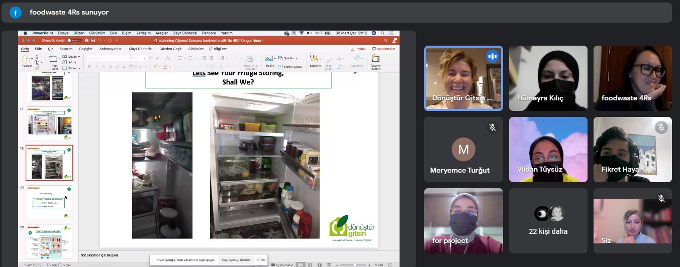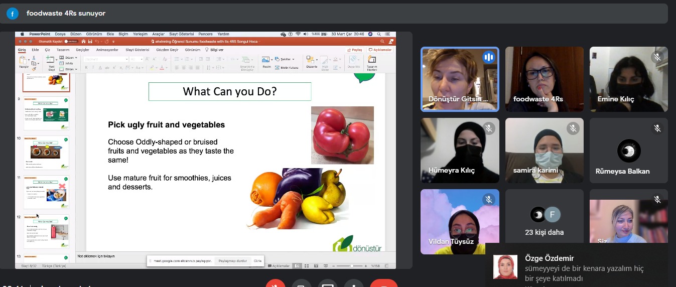 Bunun yanı sıra proje öğrencilerimizle, ‘Dönüştür Gitsin’ ekibiyle (https://www.instagram.com/donusturgitsin/) online olarak etkinlikler gerçekleştirdik. Etkinlikle, gıda atıkları hakkında daha detaylı bilgi almanın yanında hayatın içinden örneklerle gıda atık oluşumunun nasıl engellenebileceği veya azaltılabileceği üzerine çeşitli uygulamalar yaptık. Son olarak ise, yabancı akran ve öğretmenlerce oluşturulan takımlar tarafından öğrencilerin, açık bir kaynak olarak kullanılabilecekleri ve gıda atıklarıyla ilgili interaktif öğrenmede fark oluşturacak, aynı zamanda öğrencilerimiz farkındalıklarını arttıracak bir e-kitapçık oluşturma üzerine yoğun bir çalışma programı oluşturdular, devam ediyorlar’ dediler.